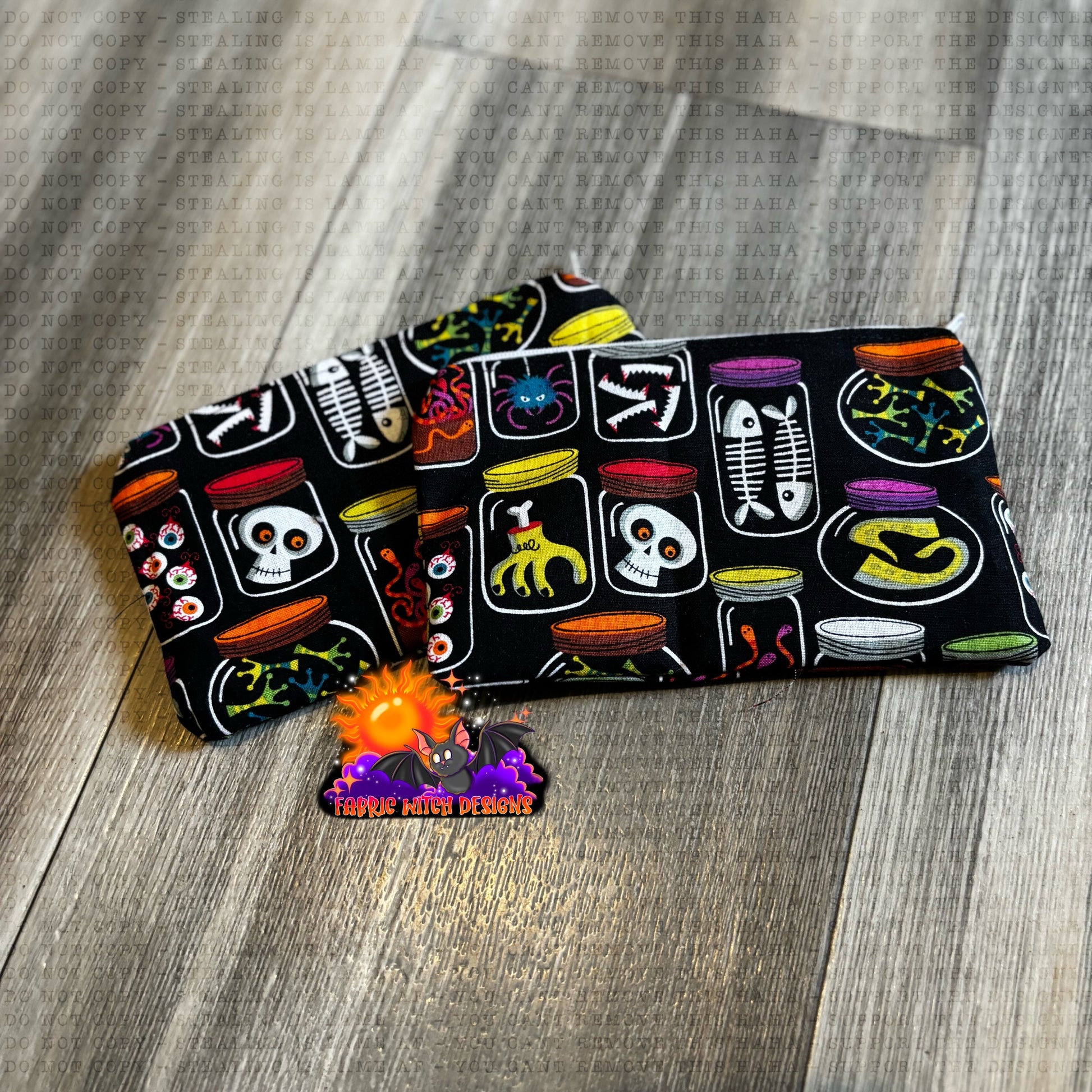"Spook up your snack game with our reusable Specimen Jars Snack Bag. Perfect for keeping your treats fresh and your style on point. Take them on the go and satisfy your cravings in quirky style. No more boring ziplock bags!"